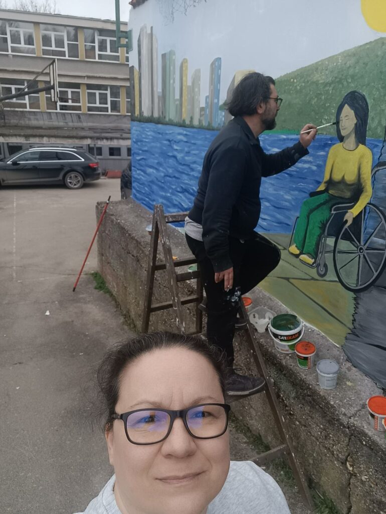 Izrada murala u okviru regionalnog projekta „Jačanje transparentnosti i odgovornosti za rodnu ravnopravnost na Zapadnom Balkanu i u Republici Moldaviji“ (Gender Budget Watchdog Network) – „Jačanje otpornosti žena s invaliditetom na uticaj klimatskih promjena u regiji Zapadnog Balkana“.