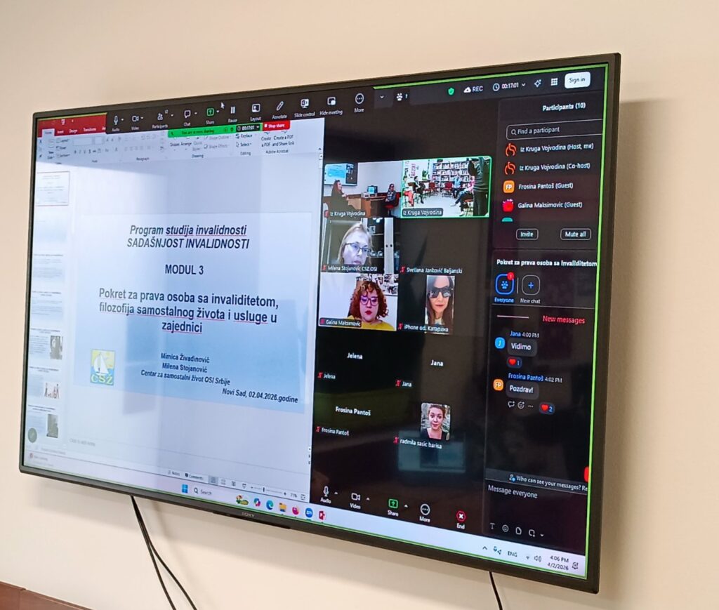 U četvrtak, 2.aprila, je održan III modul Studija invalidnosti. Teme – Istorijat pokreta za prava osoba sa invaliditetom/samostalni život, usluge u zajednici.